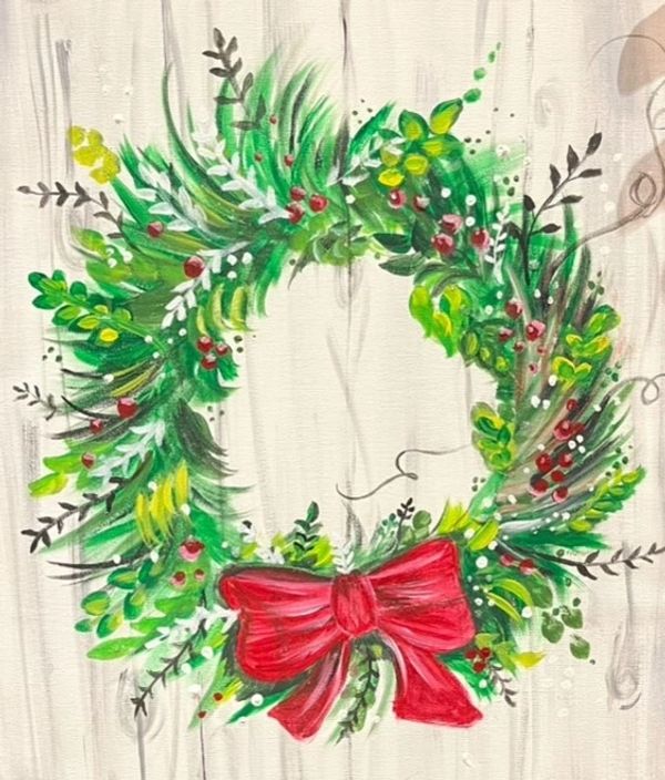 Join us for our winter canvas paint night! Each person will be painting a winter wreath on canvas. Tickets and details link below.