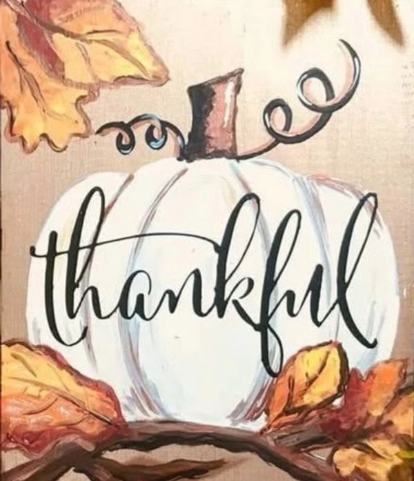 Join us for our thankful canvas paint night! Each person will be painting a "thankful" pumpkin on canvas. Tickets and details link below.